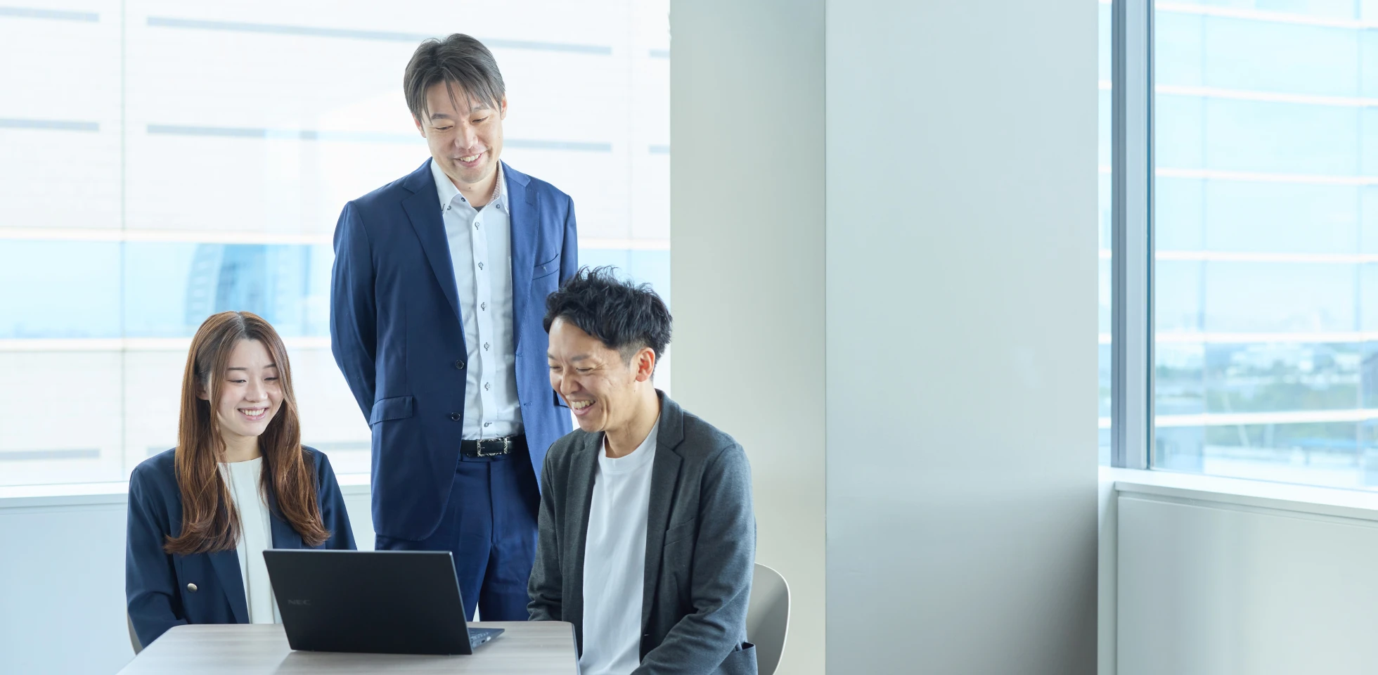 入社時から札幌を拠点に活動しており、現在は九州のメンバーと一緒にプロジェクトを進めていますが、距離を感じることはありません。同じ事業部門には、関西や九州、沖縄のメンバーもいて、地方にいながら全国の案件に携われる環境は恵まれていると感じます。