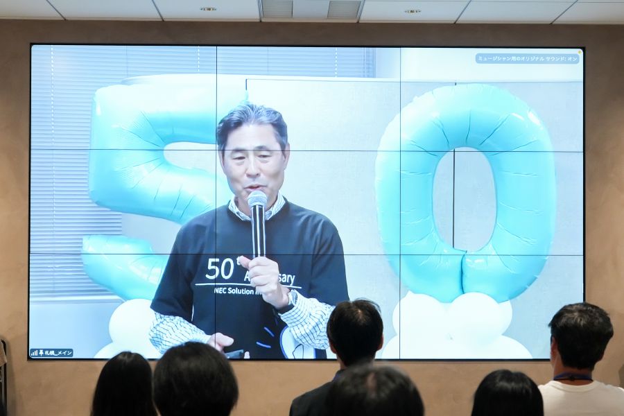 NECソリューションイノベータは2025年9月に創立50周年を迎えました。創立記念日である9月9日には、「これからの50年」を見据えた二部制のイベントを開催。第一部では、代表取締役 執行役員社長の岩井孝夫や、NECの取締役 代表執行役社長 兼 CEOの森田隆之らが登壇し、これまで築いてきた文化とテクノロジーを礎に、未来への挑戦を語りました。第二部は、全国9拠点をオンラインでつないだ懇親会。社員と経営層がともに節目を祝い、一体感を共有する場となりました。NECソリューションイノベータの“過去から未来へとつながる一日”の模様をお届けします。