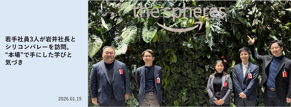 そして今回、3人の社員が11月2日から1週間にわたり岩井のシリコンバレー出張に同行。最前線で世界を牽引するテック企業の現場に触れる貴重な機会を得ました。本記事では、彼らが現地で何を感じ、どんな学びを得たのか、そしてその経験を今後どのように活かしていこうとしているのかを、リアルな声とともにお伝えします。