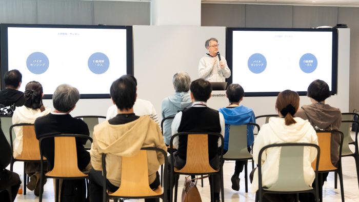 組織の規模は約150名。研究者、エンジニア、事業開発、デザイナー、ブランディングなど、多様な専門性を持つメンバーが集まっています。IT企業でありながら、DNAを扱うバイオ研究者や、行動科学・心理学の専門家が在籍。スタートアップのように大胆な仮説を立て、Jカーブ(先行投資型の急成長モデル)を前提とした事業開発に挑戦するチームもあります。技術の獲得から研究、事業化、エンジニアリング、ブランディングまでを一気通貫で推進できる体制こそが、イノベラボが「未来の実験場」として機能するための土台となっています。