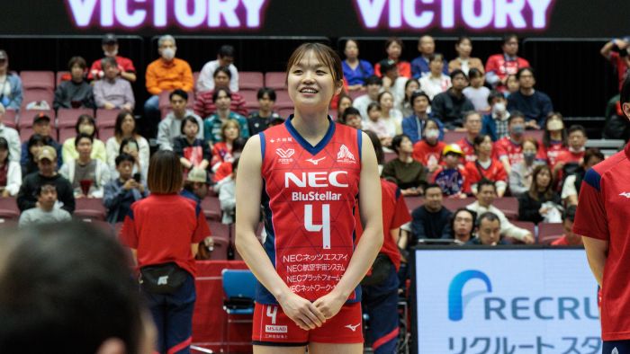 「レギュラーシーズン優勝を達成できたことをとてもうれしく思っています。ここまで支えてくださった皆さまに感謝しています。ただ、昨シーズンはチャンピオンシップで準優勝という悔しい結果だったので、今年は挑戦者としてしっかり向き合い、最後までチーム一丸となって戦い抜きたいと思います。自分のプレーを通して、NECソリューションイノベータの社員をはじめ、日頃から支えてくださるすべての方に少しでも元気や勇気を届けられるよう、これからも感謝の気持ちを持って全力で取り組んでいきます。ぜひ会場で一緒に戦っていただけたらうれしいです。最後まで応援よろしくお願いします」(廣田あい選手)