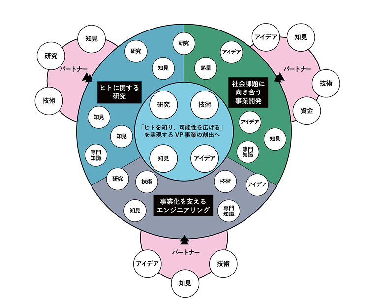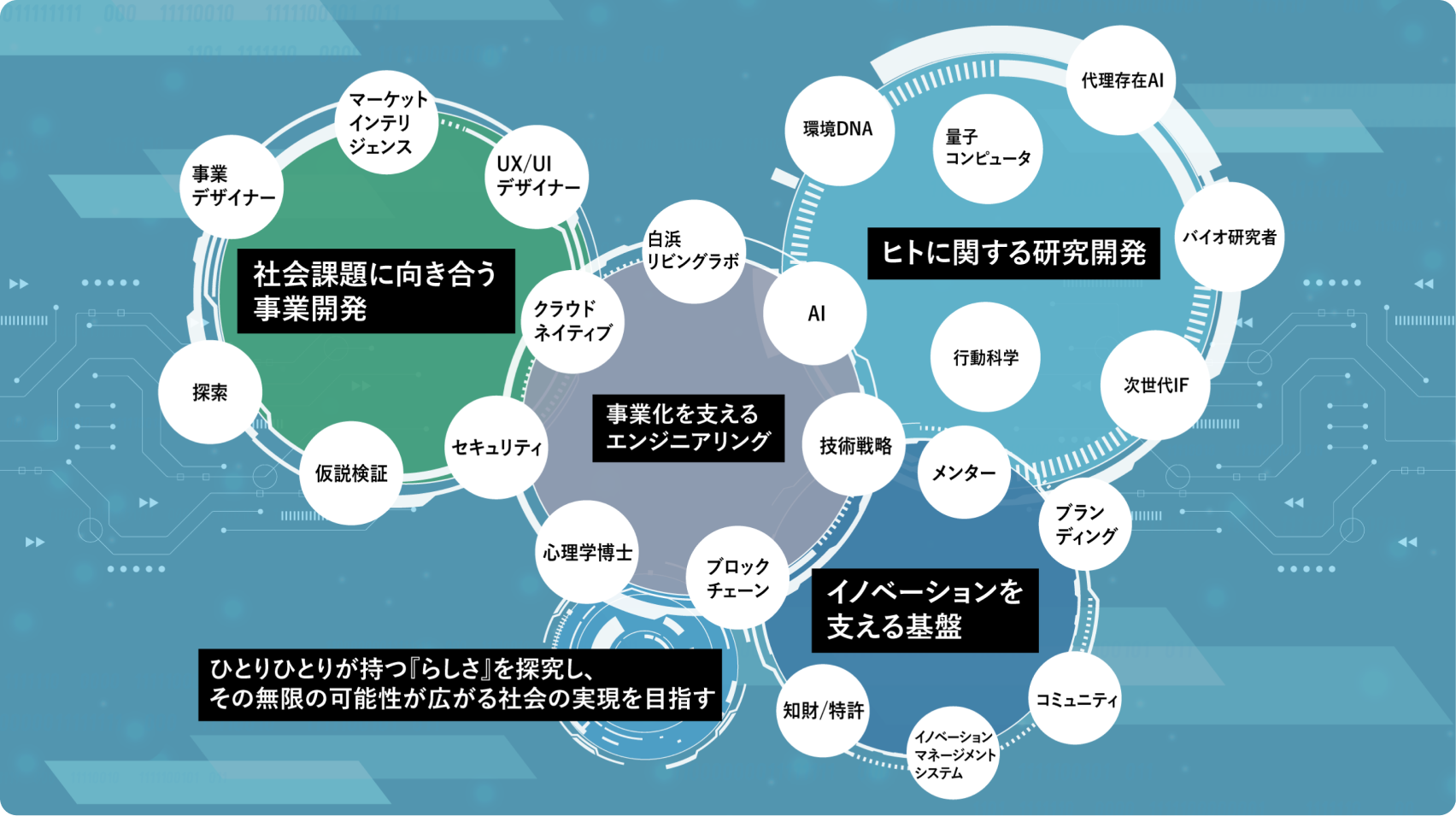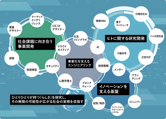 IT企業でありながら、ヒトを深く見つめ、人間らしさの可能性を拡張する技術研究と事業開発を進めるのです。