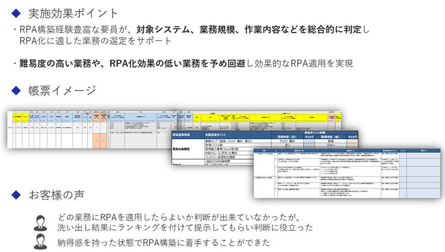 業務選定支援やシナリオ作成サポートにより、お客様主体でのRPA導入推進をご支援