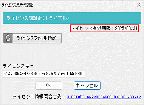 ●ライセンス認証画面で現在ご利用中のライセンスの期限を確認できるよう表示内容を追加