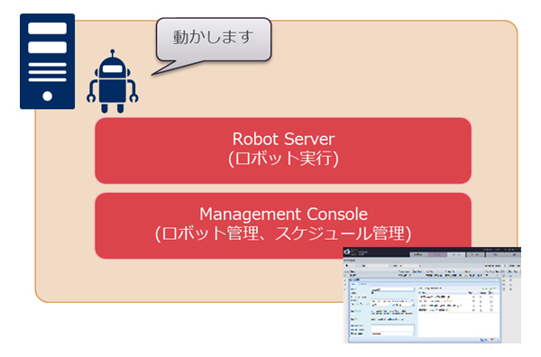 サーバ型のロボット開発では、BizRobo!を利用した開発・導入を支援します。