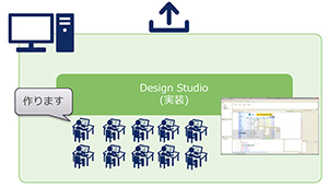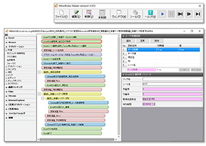 NEC RDAは、マウス操作が主体の使い勝手の良いシンプルインターフェースです。プログラム指示での複雑難解な操作は不要で、まるでブロックを積み上げるような操作でロボットが作成できます。