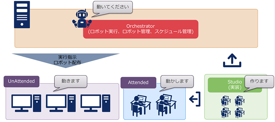 - Attendedで小さく始めて、規模が大きくなったらOrchestratorによる集中管理へスケールしやすい構成が特徴。価格もAttendedはOrchestratorに比べて安価