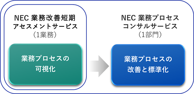 NEC 業務改善短期アセスメントサービスは、最短1週間で現状業務を可視化し、改善ポイントを提示するサービスです。