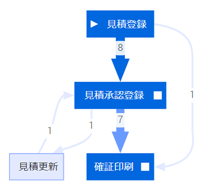 各種システム上に記録されているログデータから、一連の業務プロセスにおける業務種別、流れをツール上で可視化・分析することで、対象業務における手戻り発生箇所、繰り返し箇所、あるべきプロセスから逸脱している箇所などの課題を抽出し、業務改善につなげることが期待できます。