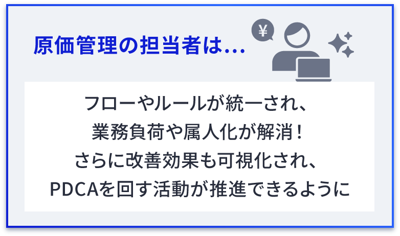 改善施策の検証も容易となり、原価管理業務全体の効率と質を高めることができます。