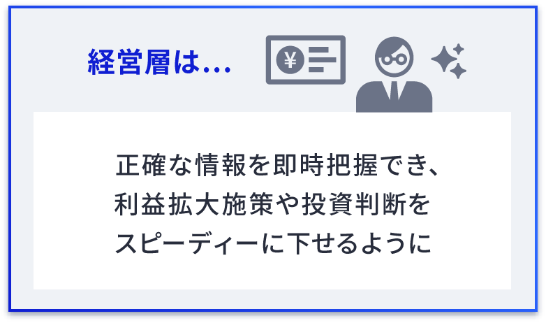 原価情報を効率的に可視化できる仕組みを提供できるため、経営層や各部門が必要な原価情報をタイムリーに把握しやすくなります。