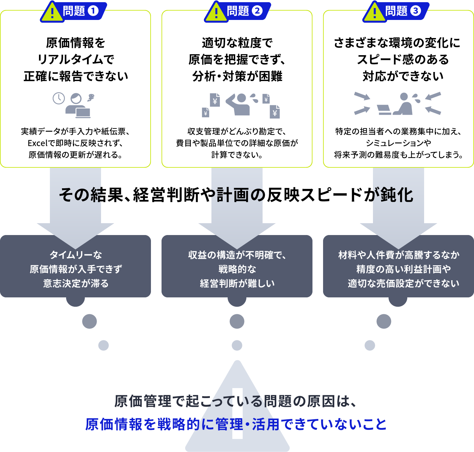 製造業における原価管理では、情報連携の遅れや原価情報の不透明さ、属人化による業務停滞など、
