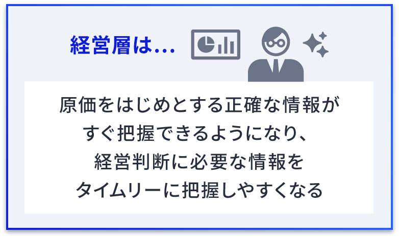 利益率改善に向けた迅速な意思決定が可能になり生産性が向上、ひいては持続的な企業成長につながります。