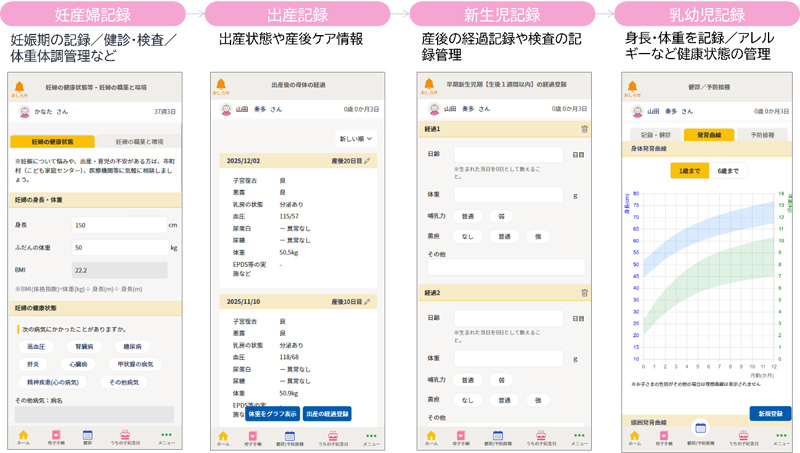 妊娠・出産・育児に関する記録が可能